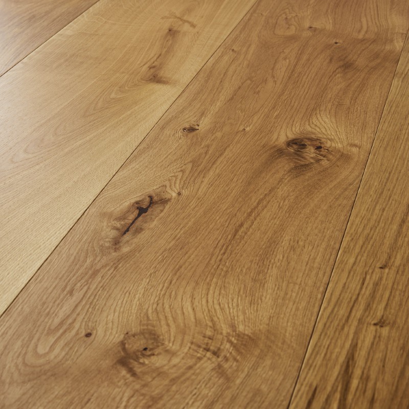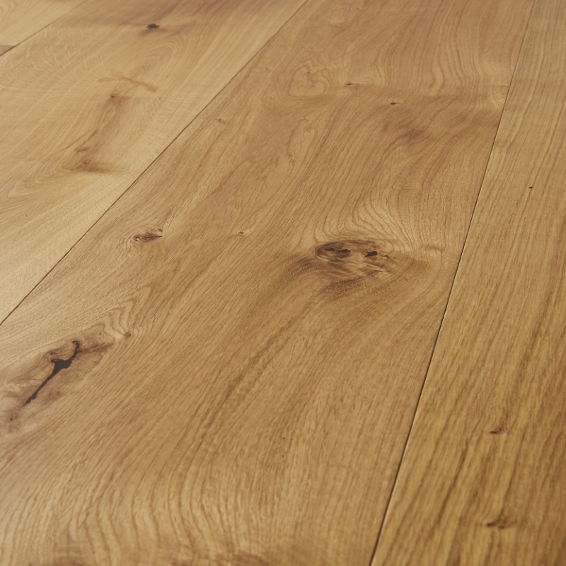 This wide‑plank oak floor features a UV‑oiled finish that enhances the wood’s natural grain while providing strong surface protection. The wide format creates a spacious, modern look.