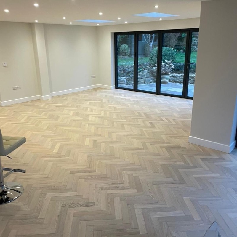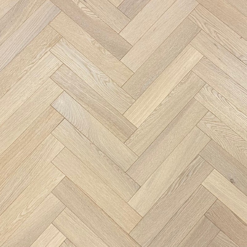 The herringbone pattern elevates the design, making it ideal for sophisticated interiors seeking a blend of tradition and modernity.