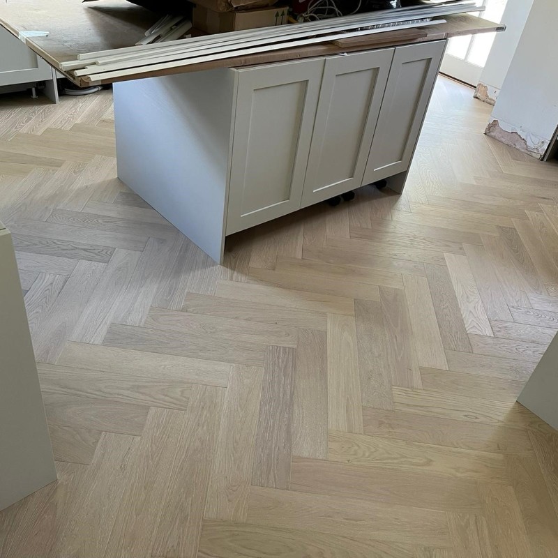 Its engineered construction ensures long‑term stability, while the herringbone pattern adds timeless elegance suitable for both modern and traditional spaces.