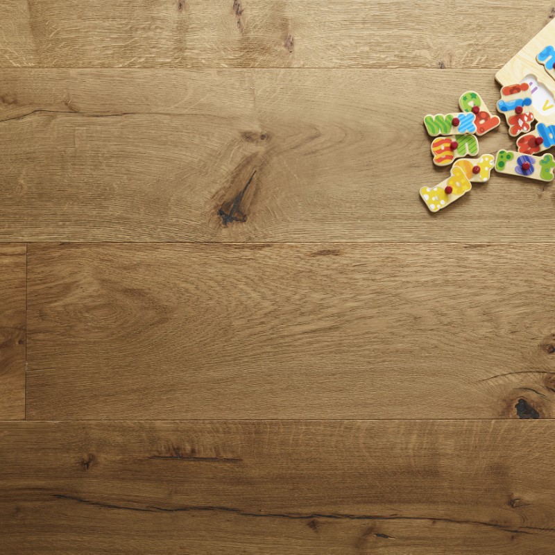 A 220mm wide‑plank engineered oak floor with warm, natural tones.