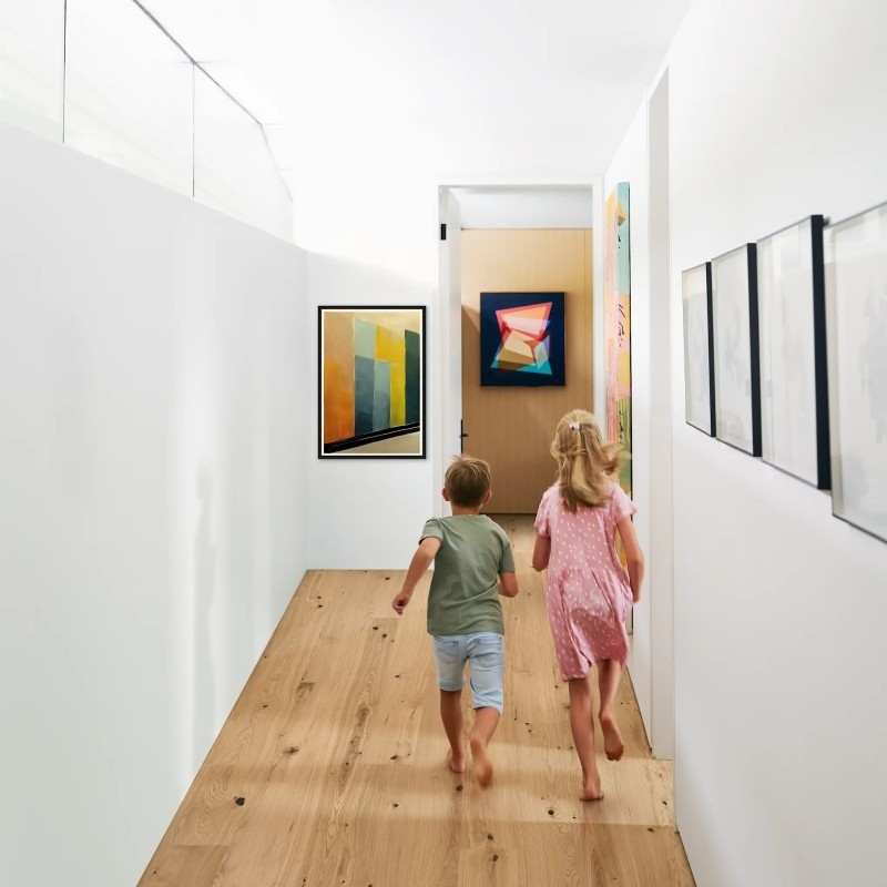 Kahrs Life Authentic Collection – Cardamom delivers a warm, mid-tone oak aesthetic with subtle grain variation and brushed texture, creating a natural, low-sheen surface ideal for modern living. The ultra-matt lacquer finish enhances the wood’s character while offering excellent resistance to scratches, stains, and UV fading.