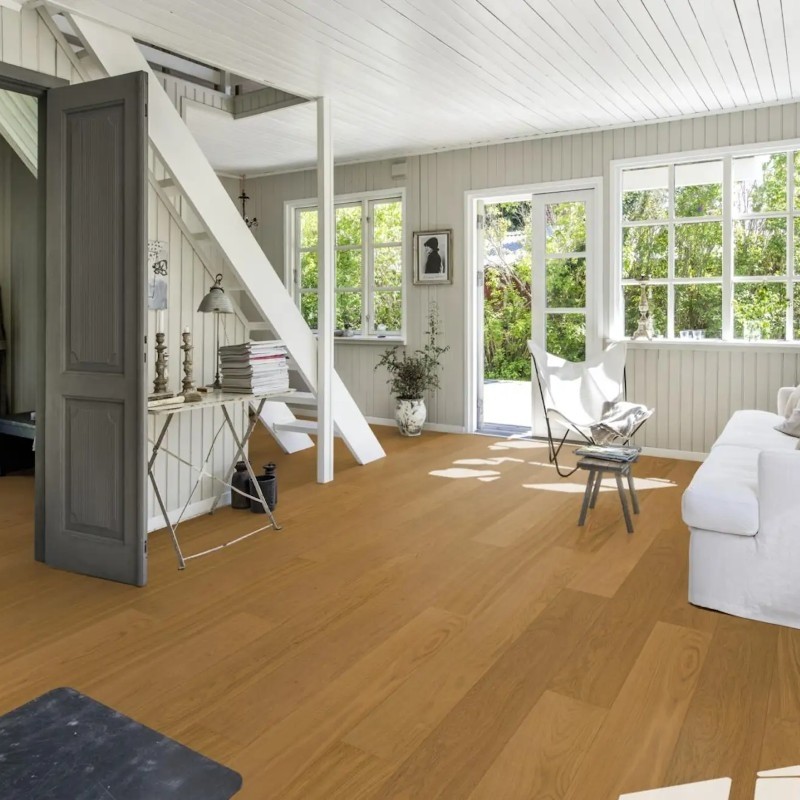 Kahrs Life Authentic Collection – Cloves delivers a deep, smoky oak aesthetic with rich brown tones and subtle grain variation, enhanced by brushing and an ultra-matt lacquer finish. This combination creates a low-sheen surface that reflects natural light softly while offering excellent resistance to scratches, stains, and UV fading.