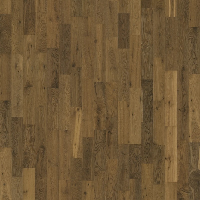 Kahrs Lumen Collection – Oak Glow delivers a deep, earthy oak aesthetic with saturated brown tones and a rich smoke finish, which accentuates the natural blemishes and grain variation in the timber. The 2-strip design creates a classic, lifeful parquet effect, ideal for open-plan and rustic-inspired interiors.