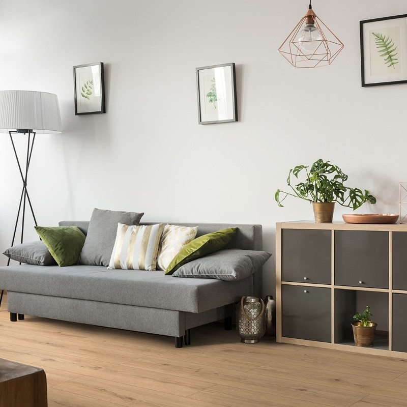 Beige oak-look laminate plank.