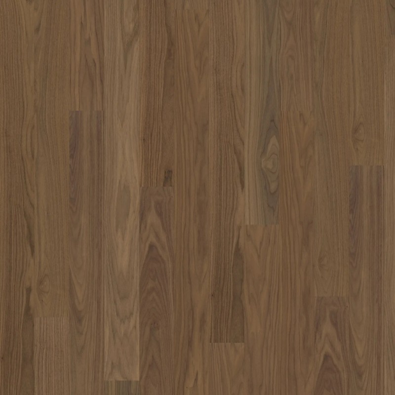 Kahrs Life Essential Collection – Pure Walnut Wide delivers a refined walnut aesthetic with deep chocolate-brown tones and elegant natural variation. The wide single-strip plank format enhances spatial flow and adds a sense of warmth, while four-sided microbevelled edges create a clean, full plank definition.