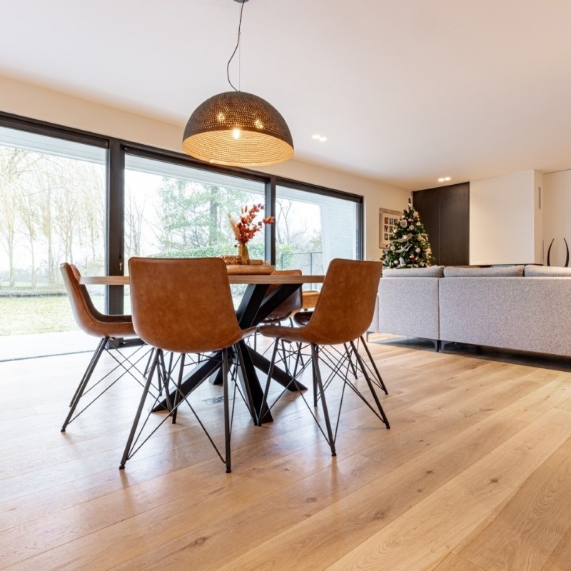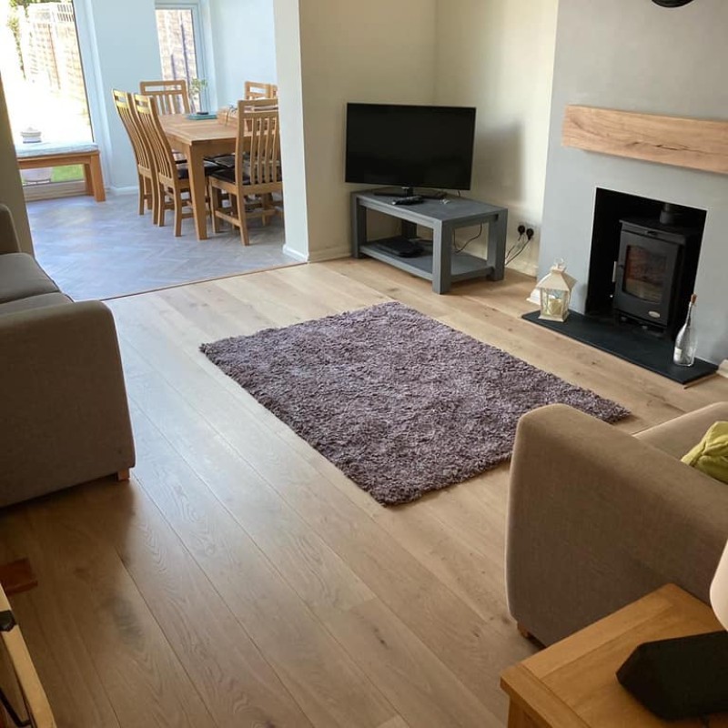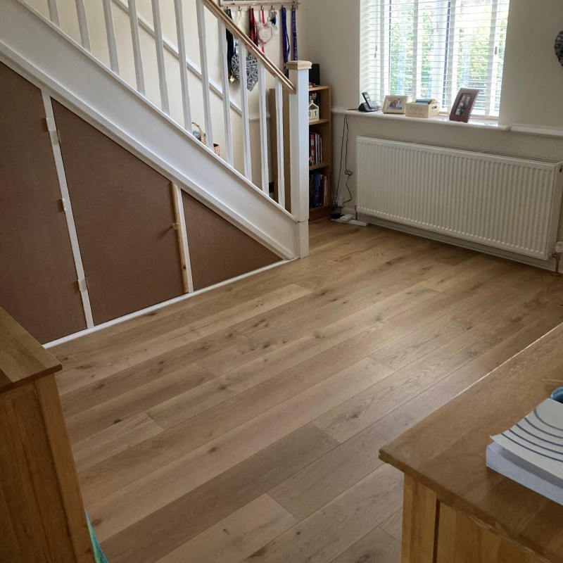 A light, contemporary engineered oak floor with soft tones and clean grain detail.