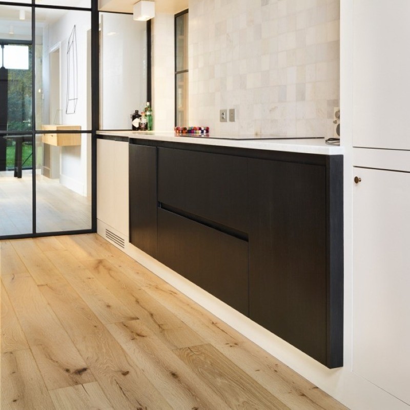 A sophisticated engineered oak floor with rich tones and refined grain structure.