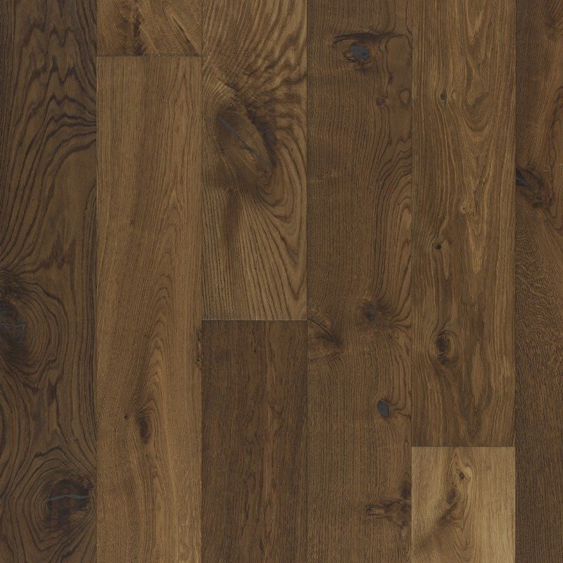 Ferme Smoked Pinda features wide oak planks with brushed texture and protective matt lacquer in rich smoked shades.