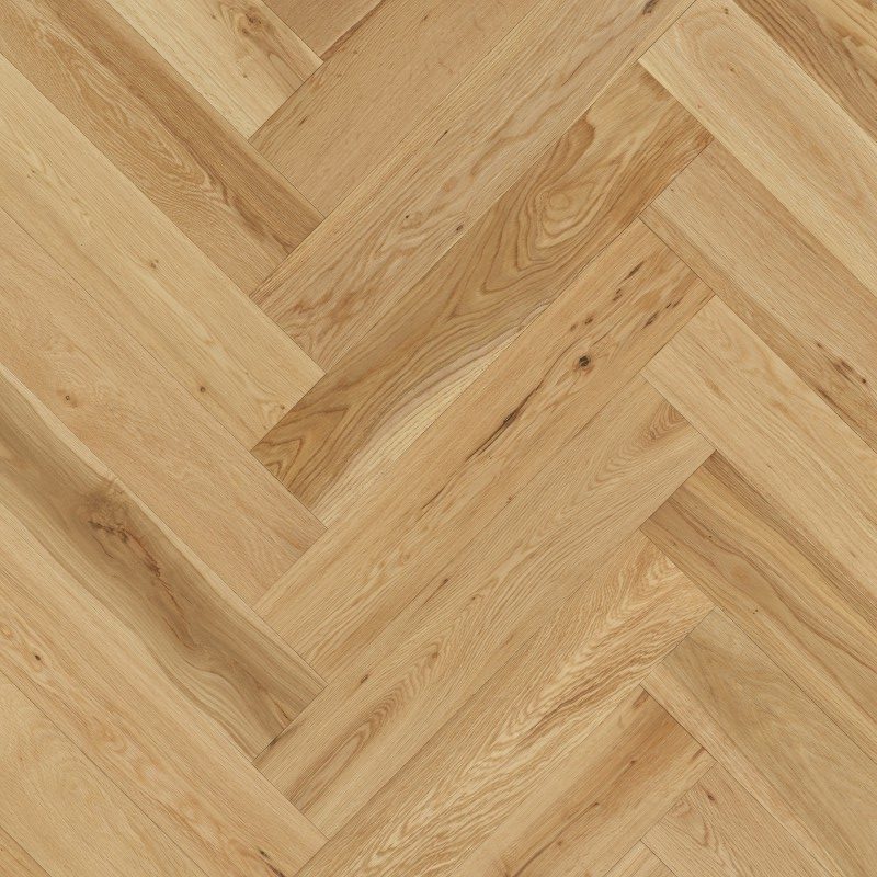 Riga Herringbone Natural highlights oak’s warm tones and grain detail in a timeless herringbone pattern.