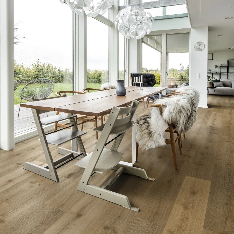Constructed with five layers including a 0.55mm wear layer and a ceramic surface coating, Akkelis is engineered for exceptional scratch and water resistance, making it ideal for high-traffic areas such as kitchens, hallways, offices, and retail spaces. The glue-down Dryback format ensures a secure, stable installation over prepared subfloors.