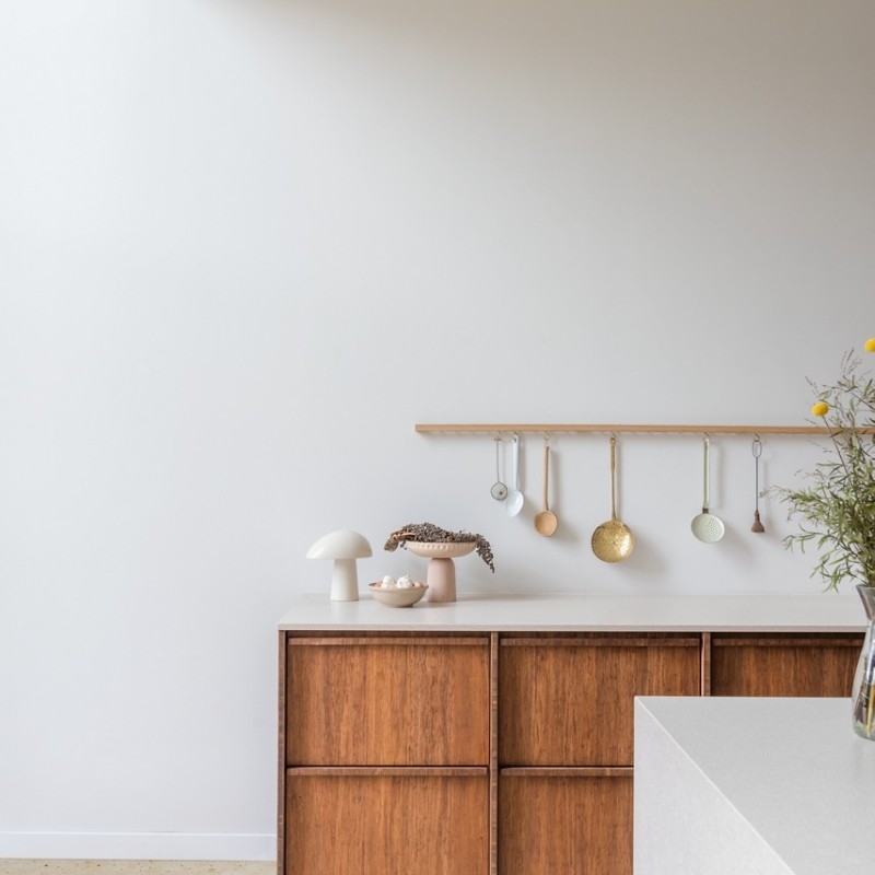 This décor blends concrete styling with subtle botanical undertones for a modern, organic look.