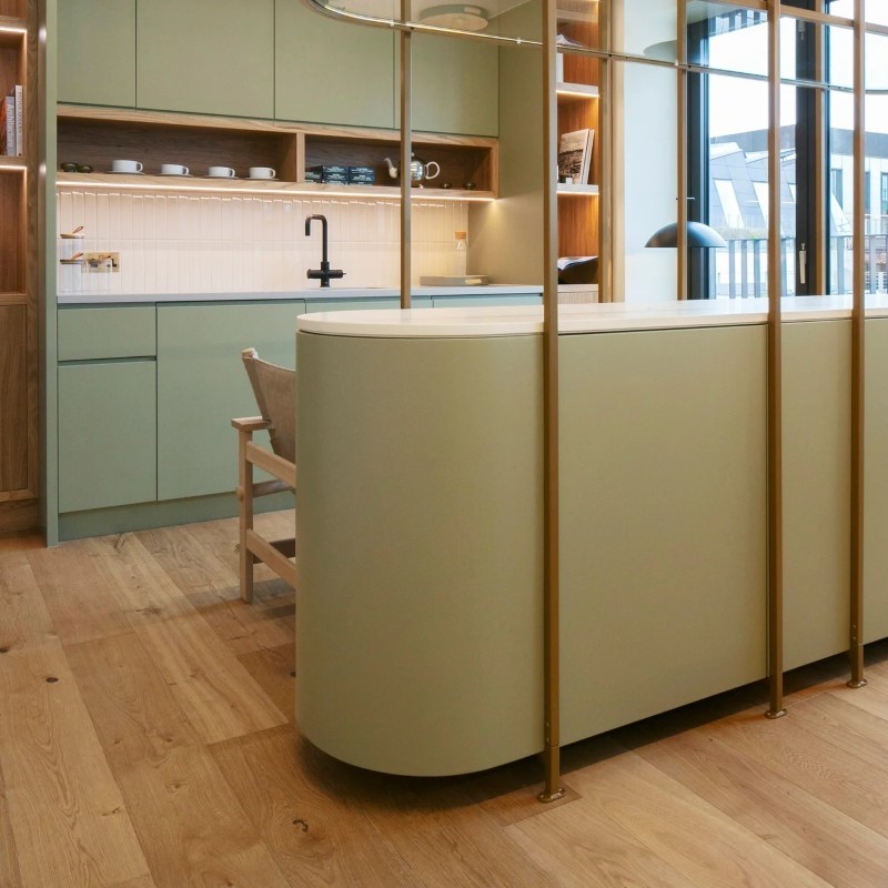 Smoked Oak features a brushed texture that enhances the grain and rustic variation of European oak. The matt lacquer finish protects against wear while adding a subtle sheen.