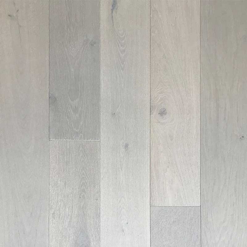 This engineered oak floor offers a contemporary cool grey tone, blending rustic textures with modern style.