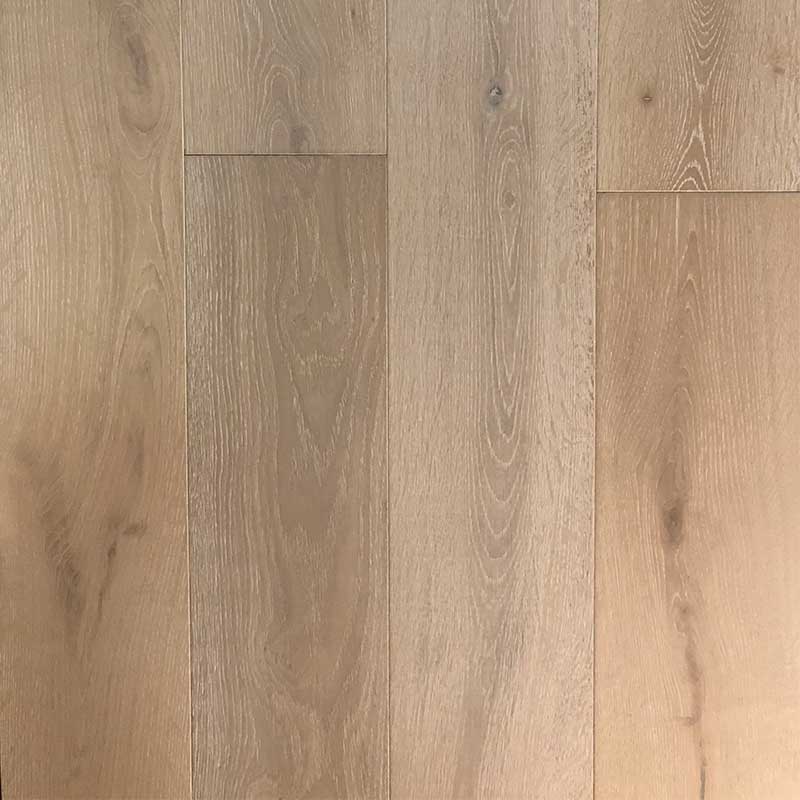 A striking engineered oak floor with a polar white finish, combining rustic features with a clean, contemporary look.